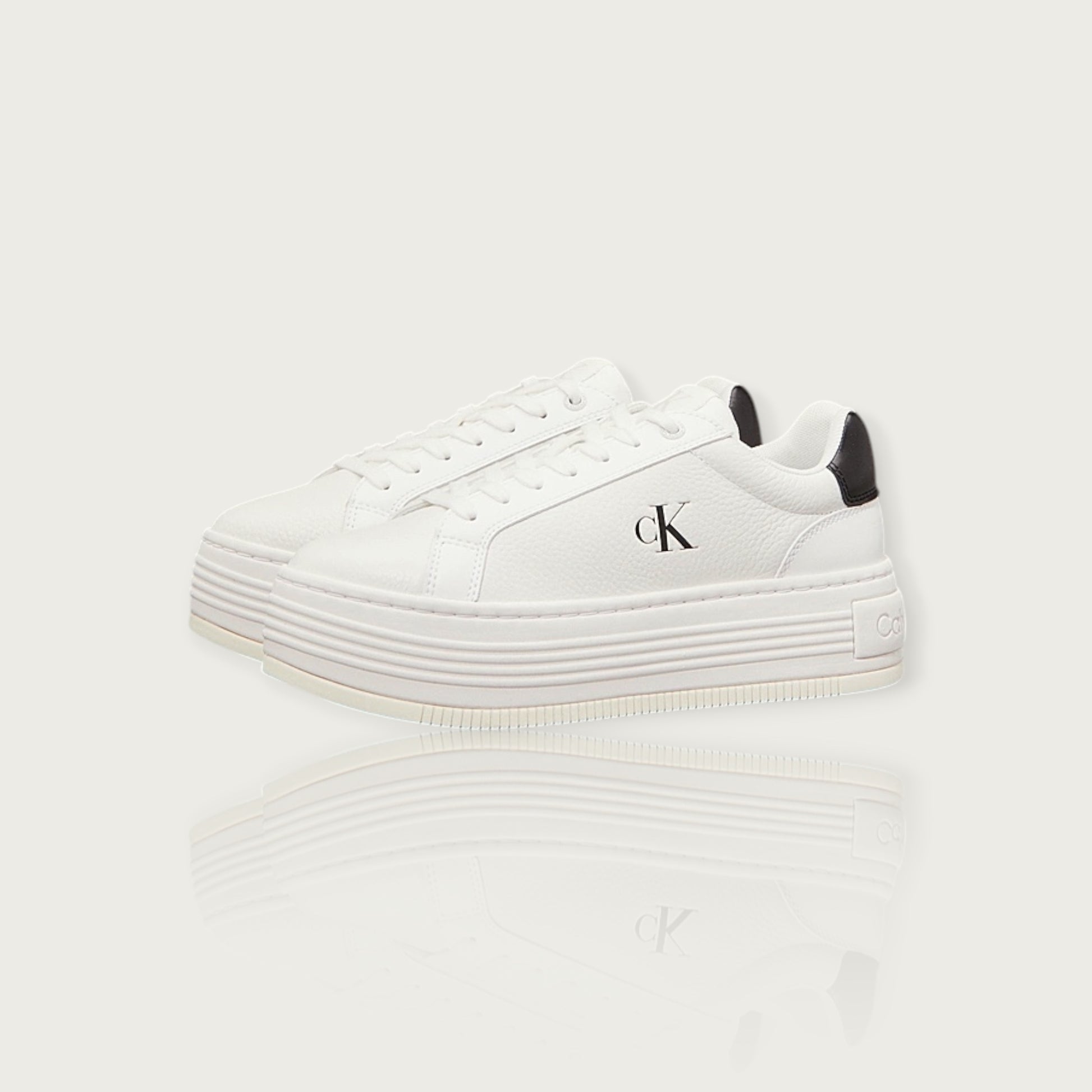 • logo Calvin Klein laterale, sulla linguetta e sul tacco